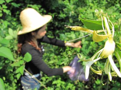 2010年5月23日,一行人途经湖北郧县刘洞镇杨河村时看到路边盛开的金银花正忙于采摘。眼下正是金银花盛开的时节,因金银花有清热解毒功效,郧县刘洞镇各处山上盛开的金银花引起了过往行人的注意,引得行人忙于采摘。