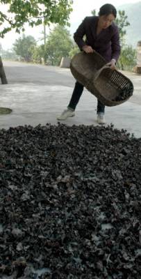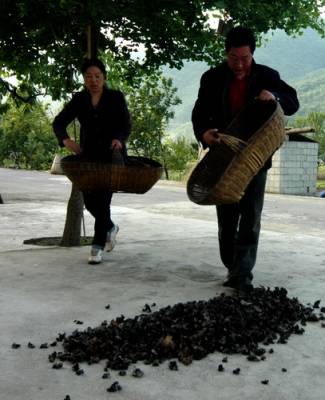5月24日天一亮,神农架林区松柏镇堂房村李治喜夫妇、八角庙村70多岁的梅兰新和儿子媳妇都到自家的木耳棚采摘木耳。前几天雨水,使他们的木耳长势很好。放晴两天后,长在棒上的木耳根才能晒干,采摘的时候才能全部拔起来,以免影响下一茬的生长。于是,他们要赶在第三天太阳没有出来前,把棒上还是湿润的木耳连根摘起来。李治喜和梅兰新的儿子梅发文都说:现在政策好了,自家木耳山上的耳树,只要免费办一个《采伐证》,就可以砍伐了。他们每家50棒一棚的木耳棚有十几棚,一般年份可以收100多斤木耳,收人三四千块钱。