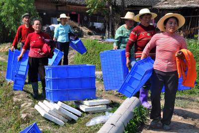 23日,宣恩县长潭河侗族乡诺西村的一群”留守老人”拿着托盘准备到烟叶育苗大棚里装烟苗。连日来的大雨,严重影响了烟叶大田移栽进度,为确保烟户利益不受损害,该县各乡镇纷纷发动党员干部深入田间指导烟农,并组织”留守老人”和”留守儿童”参与其中,形成一道亮丽的风景线。(签约摄影师田丹、梅振明)