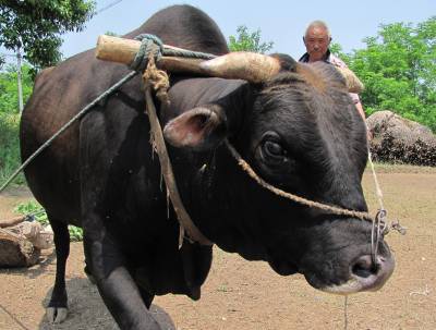 2010年5月23日,湖北郧县刘洞镇杨河村一村民正利用牛拉碾整理麦场,为后期麦收作准备。时下虽然很多地方的麦场已经硬化,但在偏远农村,许多麦场因是土场地,杂草丛生,凹凸不平,所以需要在麦收前进行整理,使其平滑,便于后期打麦、晒麦。