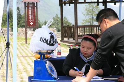 5月2日,游客在国家4A级景区恩施大峡谷用捡的垃圾兑换门票。