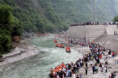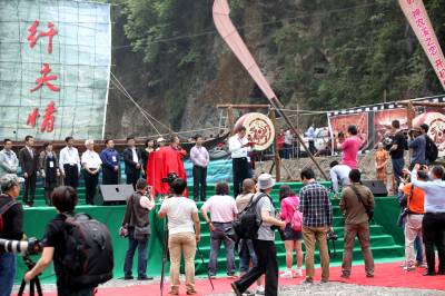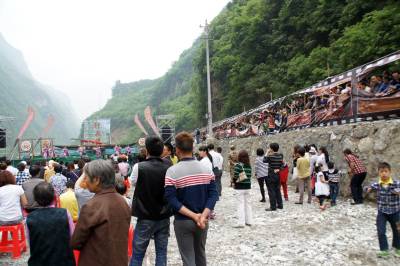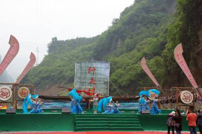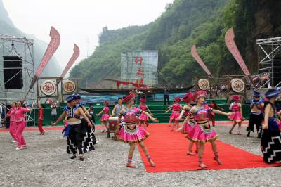 儀式結束,參加儀式的嘉賓及各級領導與數千名群眾一同觀看展示神農溪美麗傳說故事的文艺演出,繼而坐扁舟漂流了神農溪. (视界网 晨星(李長凱) 摄 手機 13517189948)
