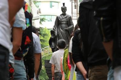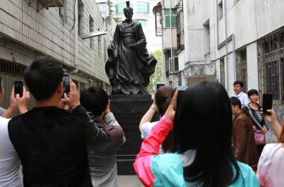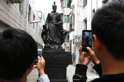 刚过立夏,又将端午。一尊屈原塑像亮相三峡坝区湖北秭归县城,这尊塑像为塑钢质料,基座和雕像高达3.9米。 本报视界网 王罡 摄