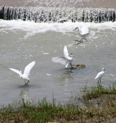 图三:白鹭在湿地嬉戏