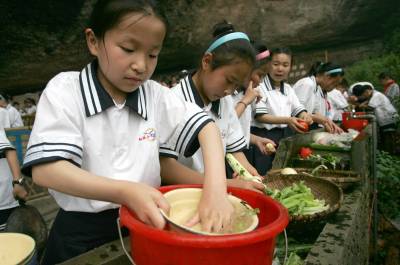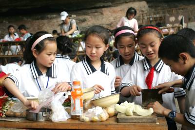 当日,湖北宜昌宜都市红花小学五年级108名学生来到宋山中小学社会实践基地,亲手洗菜做饭,体验劳动的艰辛和快乐,迎接”六一”国际儿童节。宜都市宋山中小学社会实践基地创办十年来,先后办班600多期,接纳170多所学校6万多名师生参加社会实践活动。