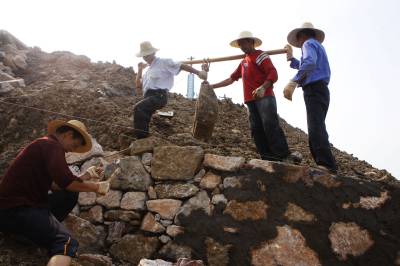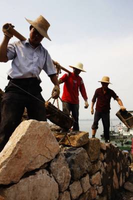 宜昌抓紧汛前长江堤防抢修2010年5月25日拍摄,水利建设者在湖北省宜都市枝城镇抢修长江大堤。湖北省宜昌市抓紧汛前长江堤防和水库除险加固工程建设,确保防洪安全。目前,长江堤防加固工程接近尾声,长江沿线和内河水库防守责任人全部落实到人到位。文振效
