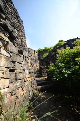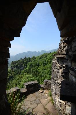 在晓峰风景区的崇山峻岭中,100多座古兵寨全部用巨石垒建于孤峰危岩之顶,凌空高耸,势如悬寨,而且寨寨相望,烽烟互见,鼓角可闻,栈道互通,形成一条气势恢宏的兵寨长城。如此之大的古兵寨群实属罕见,有始建、悬寨、兵法三大之谜。 一百多座古兵寨全部用巨石垒建于孤峰危岩之顶,凌空高耸,势如悬寨。关卡、寨门、战壕、兵居、箭垛、烽火台、瞭望孔齐全,结构厚重而精巧。而且寨寨相望,烽烟互见,鼓角可闻,栈道互通。古兵寨自东南向西北蜿延,与湘西南长城、郧西县楚长城互相呼应,气势雄伟,险峻异常,峰奇寨险,谷深林密,人文奇迹与自然美景水乳交融。