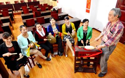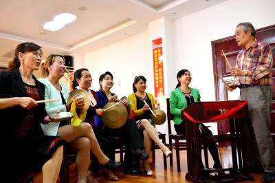 5月11日,秭归县茅坪镇文化站内,一群文艺爱好者正在加紧排练非物质文化传承文艺节目。