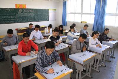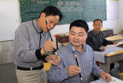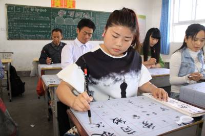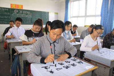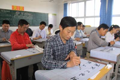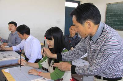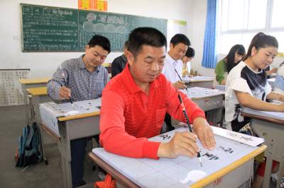 5月12日,竹山县宝丰镇红卫小学教师正在练习书写毛笔字。为提高教师的“三笔字”(粉笔字、钢笔字、毛笔字)水平和基本功综合素质,该县在全县教职工中扎实开展“写好中国字,争当好教师”活动。教师为人师表,勤于练字,其写字态度、写字习惯、写字风格、写字水平将对学生产生潜移默化的影响,为学生树立榜样,起到示范引领作用。