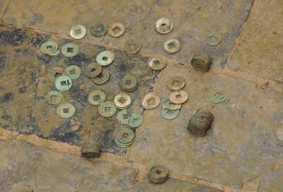 两座墓葬已出土品陶壶、陶鸡、陶狗、陶仓、陶灶、陶圈、铜车马器、钱币、石砚台等约200件(枚)。