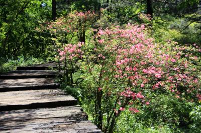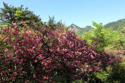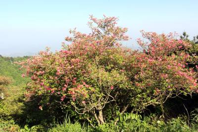 麻城市龟峰山风景区位于麻城东部的龟山镇境内,距市区25公里,由龟头、龟腰、龟尾等9座山峰组成,方圆100多公里,最高海拔1320米,因为其形酷似一只昂首吞日的神龟而得名,国家AAAA级旅游景区。麻城全市杜鹃面积100万亩,其中龟峰山风景区有10万亩连片的原生态古杜鹃群落。每年四五月间,风景区10万亩杜鹃花开似海。经专家考证,麻城杜鹃面积之大、年代之久、保存之好、密度之高、花色之美,是迄今发现的我国最大的古杜鹃原始群落,堪称中国一绝,世界罕见。 其中,龟峰山“杜鹃花王”树龄300多年,次生枝干达56枝,每枝干茎在6厘米至10厘米之间,树冠冠茎达6米,覆盖面积达35平方米。龟峰山古杜鹃群落以其面积之大、年代之久、密度之高、保存之好、花色之美于2009年04月16日被收入上海大世界吉尼斯之最。 本报视界网 陈保忠 摄