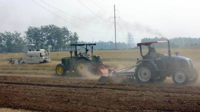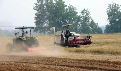 5月14日,在枣阳市琚湾镇鲍庄村2组,联合收割机开始下田作业,收获大麦,秸秆粉碎机随后将麦田里的秸秆粉碎,旋耕机翻土,播种机随即播种,收割过后的秸秆全部还田再利用,从源头控制住秸秆焚烧。据介绍,襄阳市是全国10大夏粮主产区,今年小麦种植面积为540万亩,目前即将进入收获季节。《湖北省人民代表大会关于农作物秸秆露天禁烧和综合利用的决定》于5月1日起正式施行。