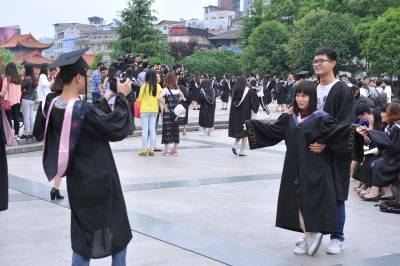 高校毕业生留影大学校园纪念青春 5月14日,湖北民族学院,高校学生在校园穿着学士服留影。 又是一年毕业时,湖北各地的高校毕业生在即将离校的时候,用相机、手机、自拍神器纷纷留影拍照,留影校园。毕业生们摆下不同的造型,定格校园风景及同窗情谊。 视界网 谢顺 摄 13277590198