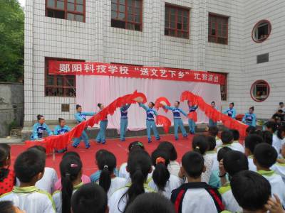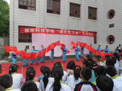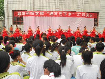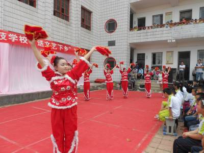 2015年5月14日,郧阳区白浪镇九年一贯制学校的留守儿童们齐聚在操场上,津津有味的观看郧阳科技学校送来的文艺汇演。据悉,为丰富留守儿童校园文化生活,大力宣传职业教育,树立职业教育思想,给农村留守学子引路导航,郧阳科技学校的五十多名师生驱车一百余公里来到该校演出,为这里的山村留守学子送上了一场场精彩绝伦的视觉“盛宴”(颜克存 摄)