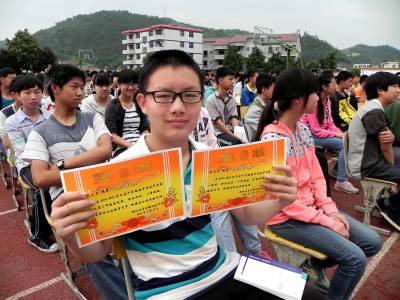表彰优秀学生 5月15日,十堰市郧阳区青曲镇初级中学表彰奖励120余位“学习标兵”、“优秀班干部”、“进步生”等优秀学生。图为学生周大力展示荣誉证书。 (视界网 张传郧 十堰市郧阳区青曲镇初级中学 13635714262 442531)