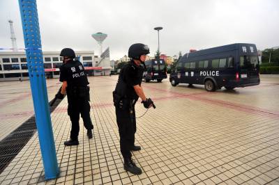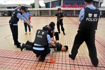 武汉铁路公安局麻城警方于5月15日上午,联合麻城市公安局在麻城车站广场开展了模拟实战演习。