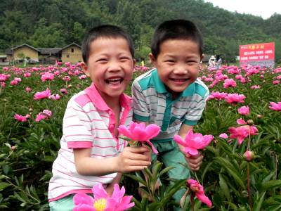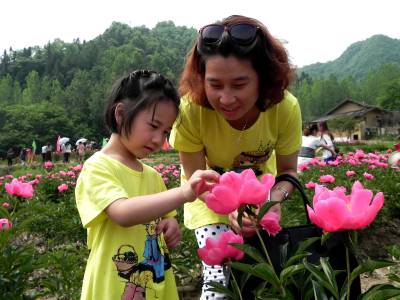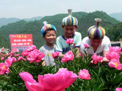 花海课堂学新知 5月16日,小朋友在十堰市郧阳区鲍峡镇枧池村欣赏芍药花。不少家长引导学生开展社会实践活动,把学生带到田间地头,请农民讲解芍药花较高的药用价值,种植知识和生态环境保护教育。 (视界网 张传郧 湖北省十堰市郧阳区青曲镇初级中学 13635714262 442531)