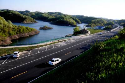5月17日,一群山地车骑行爱好者在丹江口市环库生态景观旅游公路江南段快乐骑行,体验南水北调中线水源地青山绿水带来的生态之美。丹江口市环库生态景观旅游公路按照生态、环保、旅游公路标准建设,融入地域文化元素,突出“三季有花、四季见绿”的景观设计,并配套建设服务区、停车带、观景台、游步道、自行车道等附属设施,碧绿的库水和葱绿的植被相得益彰,成为一个路景融合和环境友好的天然氧吧、山水画廊、城市绿道,被广大游客誉为“一条深呼吸的路,一条会说话的路”。