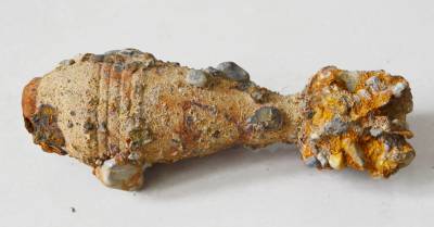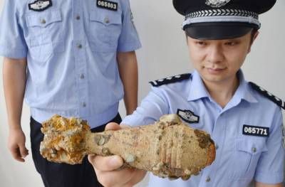 5月17日8时许,在保康县城关镇朱家场村河堤修建施工现场,工人从河道内挖出一枚疑似炮弹的金属物,遂报警。保康县公安局治安大队接到报警后,立即组织民警赶赴现场,疏散围观群众,设置警戒线。经现场勘查,确认是一枚迫击炮弹,炮弹外壳已严重锈蚀,系上世纪70年代初民兵训练所留的哑弹。为消除安全隐患,民警已将炮弹收缴入库,等待时机进行销毁处理。(视界网 欧阳智慧 摄)