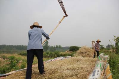 5月17日,安陆市王义贞镇刘岗村农民正抢晴收获油菜籽。据了解,去冬该镇播种油菜籽2.2(32)万亩,由于注重推广新品种,加强田管,预计产量将比去年增产一成,总产量将达到350(5000)万公斤。 (视界网 王代金 摄影)