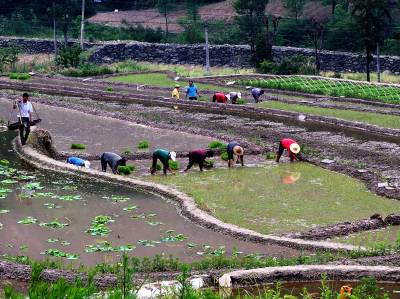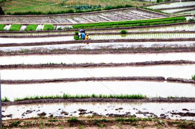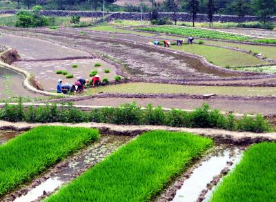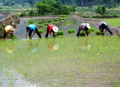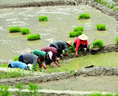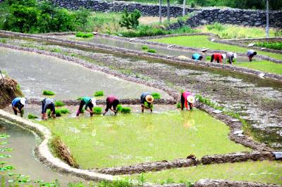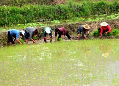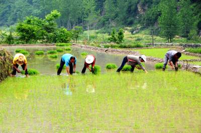 1000亩胭脂米开插稻秧