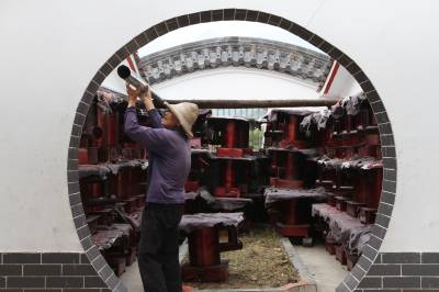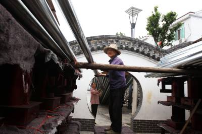 16日,竹溪县中峰镇同庆沟村民摆放防氟炉。近年,竹溪为促进绿色发展,引导以煤代柴,同时消除燃烧煤炭过程中氟对人的影响,积极推广农村居民使用防氟炉,现该县农村冬天烤火已普遍使用防氟炉。