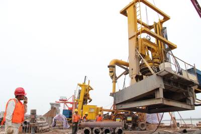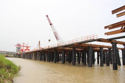 近日,嘉鱼县高铁岭镇临江山物流园区综合码头,工程正在加紧施工。据悉,该工程造价7300万元,将新建4个3000吨级泊位,年吞吐量480万吨。目前,一期2个泊位已建成,正在安装吊装设备;二期2个泊位水下桩基已完成,正在进行水上建筑施工。预计今年上半年完工,建成后将有力促进长江经济带建设。(李浩、周刘 摄)