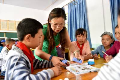 科学使者进农村 流动家长学校进村小 5月19日,恩施市科技工作者在舞阳坝街道办事处长堰塘小学讲解电磁铁知识。 当天,该市妇联结合精准扶贫工作,联合市科技局、市科协、市教育局、市消防大队,开展“科学使者进农村”暨“流动家长学校”活动,通过科普基础课、德育课堂、亲子课堂和科普大篷车展示、科普知识有奖问答、“柑橘种植技术”田间课堂等形式,传授家庭教育知识、服务广大家庭家长、提高家长科学育儿水平。(视界网 张艺馨 摄)