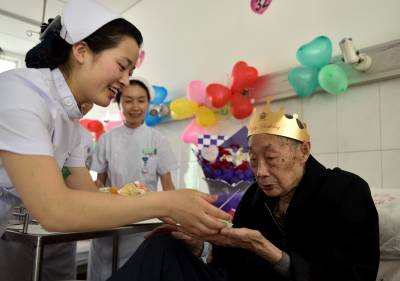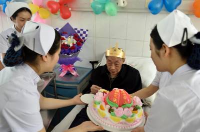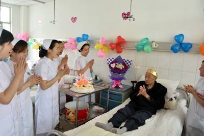 湖北秭归:医务人员为90岁老人病房庆生