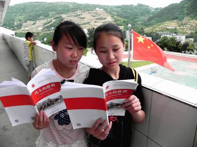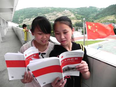 “抗战知识”进校园 5月20日,十堰市郧阳区青曲镇初级中学的学生在阅读《伟大的胜利》。在纪念抗日战争胜利70周年爱国主义教育活动中,该校开展以“讲抗战故事、共筑中国梦”为主题的教育实践活动,通过讲座、阅读、影视等让孩子们知晓革命战争时期的英雄故事,以此缅怀先烈,引领孩子们学习践行社会主义核心价值观。 (视界网 张传郧 湖北省十堰市郧阳区青曲镇初级中学 442531 13635714262)