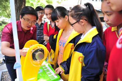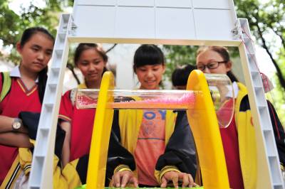 2015年5月21日,宜昌市夷陵区“科普大篷车进校园”巡展活动走进区实验初中,学生们通过参观了解和实践操作体现声学、光学、电学、力学等科技的29件科普展品,在亲身体验中感受了科学带来的快乐和科普展品的神奇魅力。