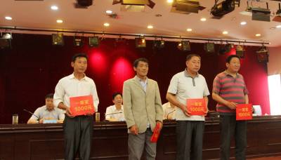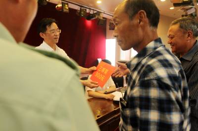 5月21日,房县防汛抗旱指挥部副指挥长、县委副书记张慧斌(左)在为水库义务安全员颁发奖金,颁奖会上有25名水库义务安全员毎人分别获得300至1000元的奖励,同时,对管理小(-)型、小(二)型水库义务安全员,分别给予7000至5000元的补助。该县71座小型水库实行“-库一人”防汛安全员管理,旨在落实水库防汛安全24小时有人管护,确保水库下游群众生命财产安全。据悉,2012年,这个县率先在全省推行小型水库管理体制改革,建立健全了水库防汛安全管理措施,水库安全管理工作跨入全省前列。