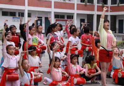 5月21日,竹山县宝丰镇施洋小学的学生正在练习打腰鼓。为提升农村孩子综合素质,促进城乡均衡教育发展,近年来,该县在各校广泛开展以诵古文美心德、立品德树新人、文体艺术、传统艺术等为主要内容的“一校一品”创建活动。在特色化、趣味化、常态化上下功夫,满足学生的成长需求,提高学生的身体素质、创新思维、实践能力和艺术修养,以此促进学生全面发展。
