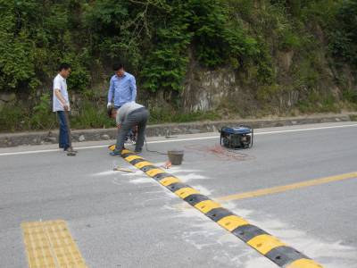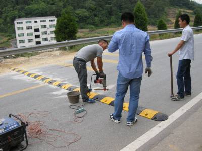 5月22日,几名技术人员正在郧西县河夹镇集镇入口处安装减速带。作为山区镇,河夹境内山高路陡坡急,为避免交通安全事故的发生,5月来,该镇一方面组织专班对境内违规行驶车辆进行查处,对违规驾驶员进行安全教育;另一方面积极推进“村村通客车”工程,用正规车替代黑车,对危险路段进行整修,在重点路段安装减速带,仅减速带一项将投入10余万元。