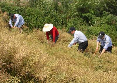 交警下田收菜籽5月25日,荆门市掇刀交警大队的五六位民警,来到团林镇合兴村困难驾驶员曾涛家的油菜田里,乘着天晴帮助他收获已成熟的油菜籽。荆门交警开展”四季问安”活动以来,支队民警针对季节特点,春问耕、夏问暑、秋问收、冬问寒,为当地群众解决实际问题。本报视界网陈旭摄