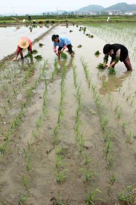 图三:往年的旱田,因去冬今春修了渠道,农民忙着插秧