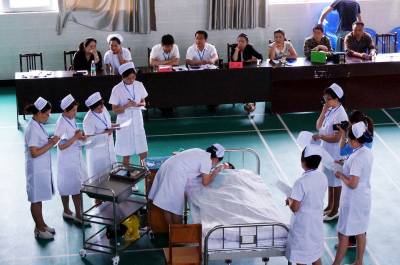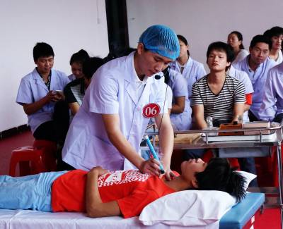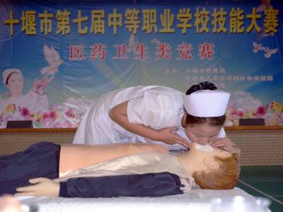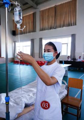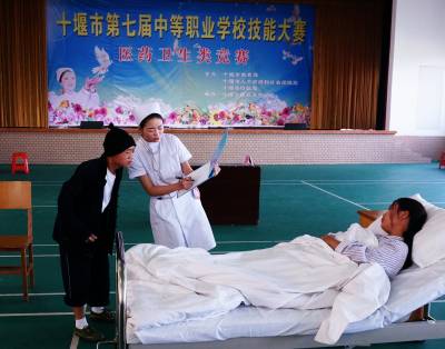 5月23日晚,十堰市医药卫生类第七届中等职业学校技能大赛在郧阳区十堰市医药卫生学校滨江校区圆满结朿。此次医药卫生类大比武共设四大项九小项比赛內容,分别是囗腔护理技术、护士礼仪、宻闭式静脉输液技术、医患沟通、单人徒手心肺复苏术、针刺操作、炙法操作、拔火罐、推拿手法竟赛。通过两天激烈的决足最后产生集体和个人一、二、三等奖。此次十堰市第七届中等职业学校技能大比武共分十大类1000多名学生参加技能比武。 视界网周家山摄