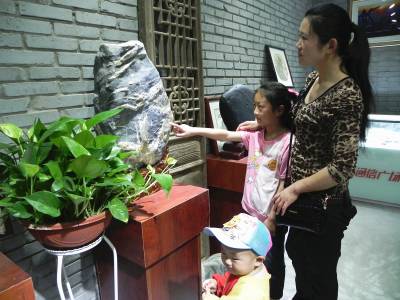 观赏奇石古玩 5月25日,市民在十堰市郧阳奇石古玩城观赏奇石古玩。郧阳奇石协会组建的奇石古玩城,占地近2000平方米,进驻了37家店铺,涵盖奇石、绿松石、古玩、字画、仿古家俱等,现展出奇石10000多枚(件),古董500多件,预计可拉动年旅游收入2000余万元。 (视界网 张传郧 湖北省十堰市郧阳区青曲镇初级中学 13635714262 442531)