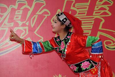 5月23日,一名选手在参与舞蹈项目的比赛。