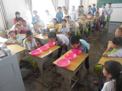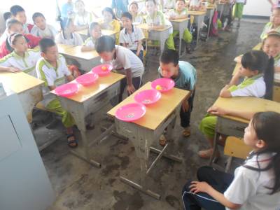 山里娃庆“六一”。5月25日,在“六一”国际儿童节来临之际,十堰市郧阳区白浪镇九年一贯制学校组织该校的小朋友们参加了丰富多彩的游园活动来欢度节日。五一班的学生为倡导“爱护水资源,争做南水北调水源保护者”,纷纷参加了“吹乒乓球”活动,他们将盆里盛满清水,身体不能接触清水,然后将乒乓球从一个盆里吹到另一个盆里,必须保证盆里的水澄清无杂质,最终胜出者可以领到一张印有“南水北调水源保护者”的奖券,拿着奖券可以在校园超市换取自己喜欢的文具。(供稿:湖北省十堰市郧阳区白浪镇九年一贯制学校 颜克存)