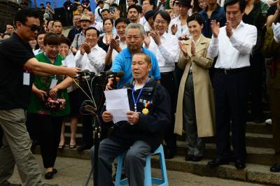 抗战老兵张人源亮相《最后的国门之英雄宜昌》开机仪式