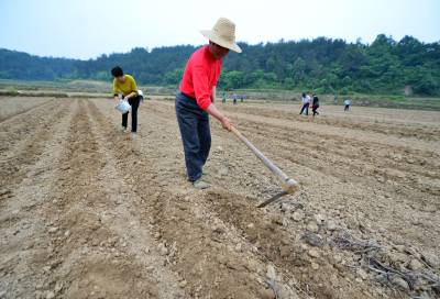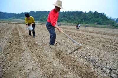 26日,农民在地里撒播有机高粱种子,为酿酒种下原生态高粱。当天,湖北石花酒业在谷城县五山镇熊岗村举办千亩有机高粱种植开播仪式。此次播种的有机高粱种子从山西省农科院引进,蛋白、淀粉、单宁含量较高,这三项指标在酿造美酒中起着关键作用。 视界网 谢勇 摄
