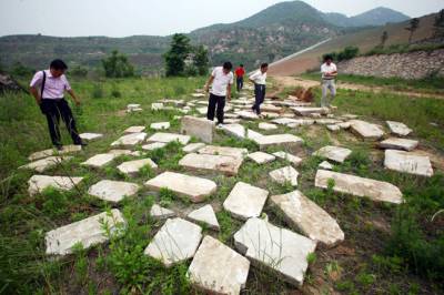 随州发现大批清代古碑一大批清代古碑日前在随县花鹿沟水库被发掘出土。这批古碑分别为记事碑、古寨碑和墓碑,时间跨越清代乾隆、嘉庆、道光、咸丰、同治、光绪、宣统各个时期,目前已发掘近千块。有关专家目前正清理研究。随州日报孙洪涛摄