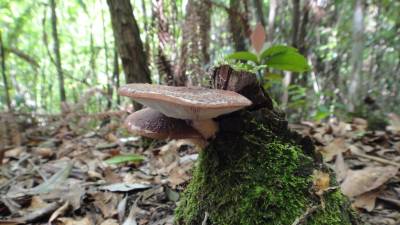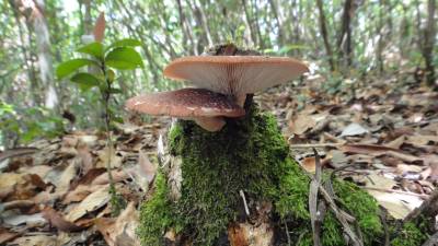 5月23日,在野外徙步时见到的情景,一对野生菌生长在带青苔的树桩上,上下挨着,相依相伴,似夫妻似恋人,生命之活力,无不为之感叹。