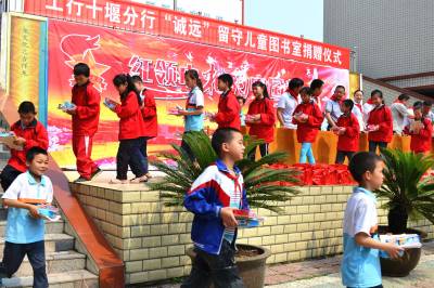 爱暖水源区 5月27日上午,“六一”前夕,中国工商银行湖北十堰分行为南水北调水源区湖北十堰市郧阳区柳陂镇中心小学留守儿童捐建了“诚远”爱心图书室,赠送精美图书1000余册和爱心电脑、生活、学习用品、大礼包等30多箱,并组织“爱心妈妈”“少先队员”和留守儿童一起游戏、分享队日快乐。 (供稿:湖北省十堰市郧阳区柳陂镇中心小学 杨显有 13277199605 442532)