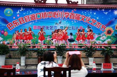 展才艺迎六一 27日,“六一”儿童节来临,巴东县官渡口镇中心小学首届文化艺术节拉开帷幕。当日,同学们表演了“我的梦 中国梦”大型团体操,举行了庆“六一”文艺演出、啦啦操比赛。活动内容精彩纷呈,充分展示了同学们艺术才能,2000多名师生共享文化艺术大餐。(视界网 穆世祝 税典松 摄)