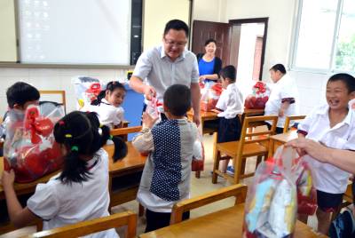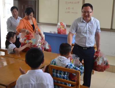 镇长为残疾儿童送节日礼物