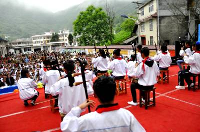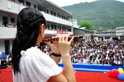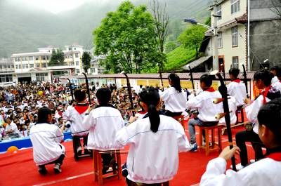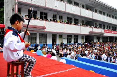 民族乐器进校园 5月28日,在恩施市红土乡中心小学操场上,特长班学生正在向同学们汇报演出。 近几年来,该学校将二胡、笛子等民族乐器引进学校,并聘请专业老师进行授课,极大开阔了同学们的视野,使有一技之长的学生有了一个学习器乐的平台。通过器乐训练,提升了大家对艺术的欣赏水平,增强了民族自豪感的同时,也丰富了孩子们的课余生活。(视界网彭绍峰秦达栋摄)