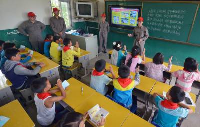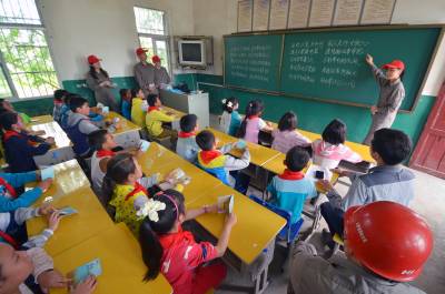 青年志愿者关爱留守儿童