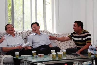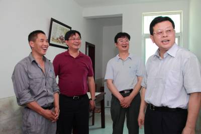 5月28日,国务院南水北调办公室副主任蒋旭光到湖北调研外迁移民生产、生活安置情况。中午1:00时一下飞机,就在省移民局局长彭承波的陪同下,马不停蹄来到武汉市江夏区金口武当村移民安置点实地察看移民生产发展情况。每到一户,都与当地移民谈笑风生,不时引起当地干部群众哄堂大笑。郑光松摄